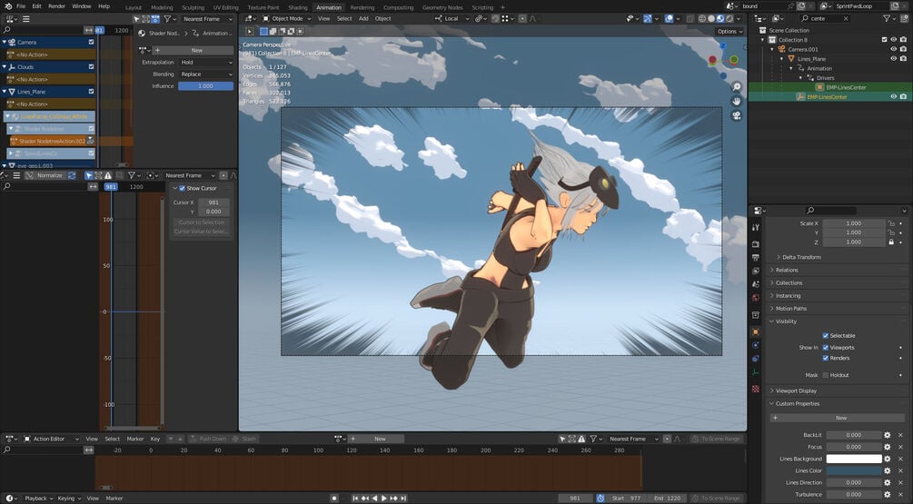 A blender scene with my material set-up to get awesome speed/concentration lines